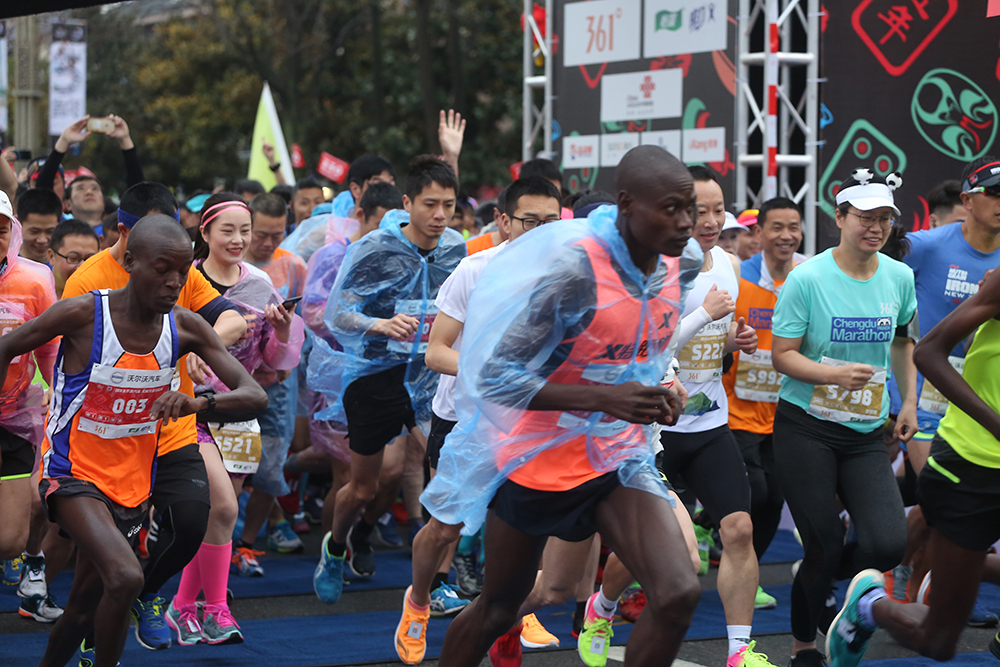 本屆賽事起點(diǎn)位于鳳凰體育場(chǎng),途經(jīng)宣化門(mén)、熊貓谷和都江堰市人民政府傾力打造的天府綠道、環(huán)山旅游線(熊貓綠道),馬拉松終點(diǎn)為“世界文化遺產(chǎn)”青城山。來(lái)自29個(gè)國(guó)家和地區(qū)的3萬(wàn)名跑者踏上最美賽道,起跑前他們高聲齊唱《歌唱祖國(guó)》和《我和我的祖國(guó)》,現(xiàn)場(chǎng)氣氛十分燃!天下著小雨,跑馬人熱情不減。今年是成都雙遺馬拉松連續(xù)開(kāi)跑第五年,五年奔跑歷程,今年的成都雙遺馬拉松更別具意義。