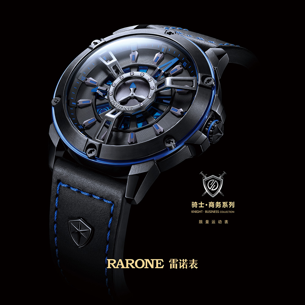 騎士•商務系列 限量運動表,具備耐磨、防眩弧形藍寶石鏡面,12個刻度具有出色的夜光功能,方便黑暗環境下準確讀時。大尺寸表盤,真皮表帶襯以縫線飾邊,殼圈周圍由六個可見的螺絲裝飾,凸顯腕表的陽剛硬朗,更具安全感。共有紅黃藍綠四種熱烈的顏色,配以沉穩黑色,個性中保留神秘感。