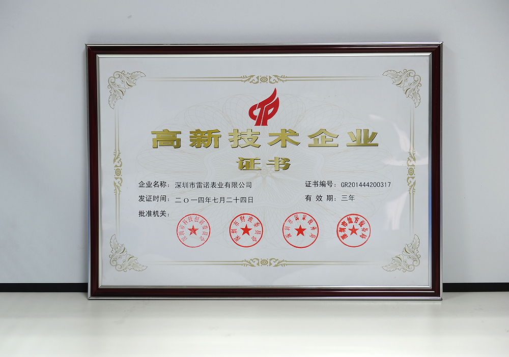 經(jīng)過國家科技部、財(cái)政部等相關(guān)部門的嚴(yán)格審核,雷諾表被認(rèn)定為“國家級(jí)高新技術(shù)企業(yè)”!這標(biāo)志著雷諾表在自主知識(shí)創(chuàng)新、核心專利產(chǎn)權(quán),科技技術(shù)研發(fā)及成果轉(zhuǎn)化方面,均達(dá)到行業(yè)水平,且在鐘表領(lǐng)域中具有較強(qiáng)的市場(chǎng)價(jià)值和資本價(jià)值。