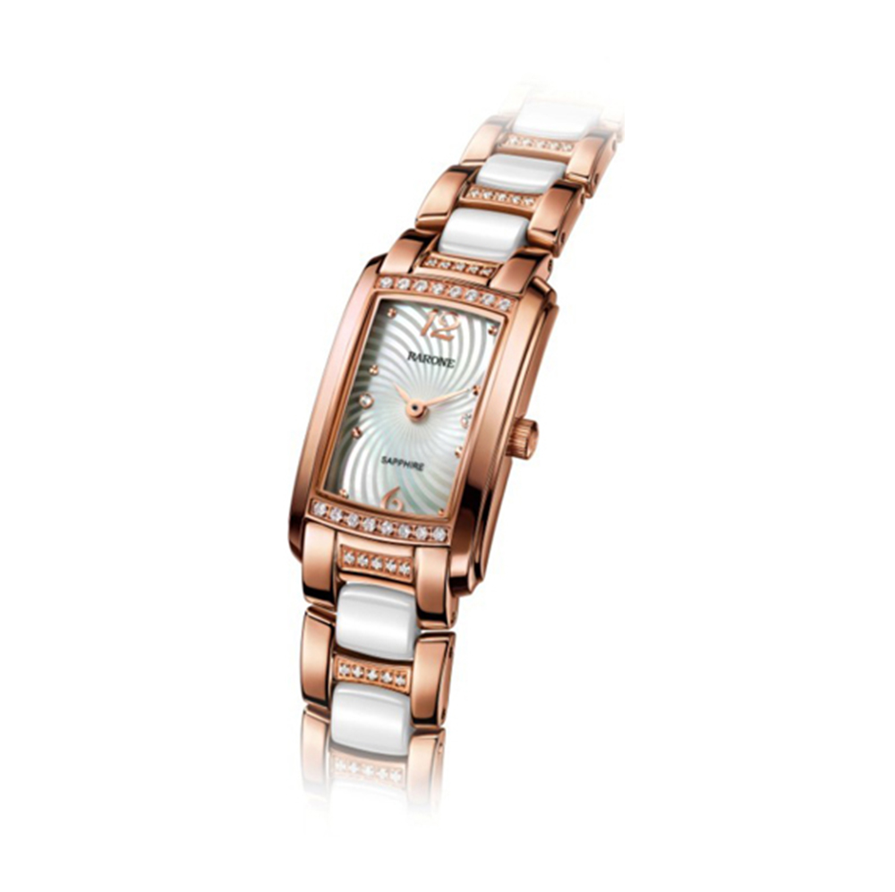 輕薄間陶瓷表帶,鑲嵌40顆閃耀鋯石,纖細的線條,優雅的長方形表殼、表盤設計干凈簡潔,典雅別致,使腕表更像是增加了計時功能的手鏈,陪伴主人精致的出席各種場合。