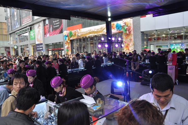 本次是雷諾表2012年年終感恩惠利——全國大型巡展深圳站的活動,通過一系列限量特惠表、贈送多重好禮等促銷方式,并現場抽取千足金金條、ipad、真皮錢包等豪華大禮,感恩鉅惠消費者的支持和喜愛。特供大量高品質貨品,吸引了大批消費者的搶購,使得巡展現場人山人海,熱鬧非凡。